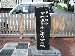本陣跡を出ると、その先は「中山道と甲州道中の合流点」で、石碑が建てられている。