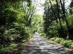 森の中の峠道をひたすら下り、先で国道142号を横断し、ガードレールの切れ目からふたたび峠道に戻る。