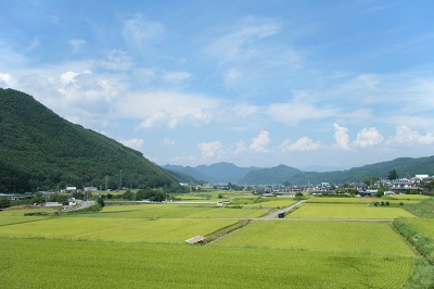 二日目は、翌日の和田峠越えに備え、和田村の先の峠の登り口のあたりまで行っておきたい。朝食はなるべく早めにということで、お願いしてある。朝から青空が広がるいい天気だが、予報では午後遅くなると天候悪化の恐れあるようで、早め早めに先を急ぐことにする。近頃は、ゲリラ豪雨がしばしば発生しているので、特に用心しないといけない。