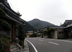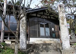 国道は登坂車線になり、歩道の方も緩やかな上りが続く。片平付近で右手にほんの少しだけ旧道が残っていて、こじんまりした民家が残っている。その先、国道に出たすぐ右手をみあげたところに、民家風のつくりの鶯着寺(おうちゃくじ)がぽつんとある。