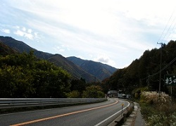 塩渕を通り過ぎると旧国道に合流し、右側のJAのスーパーの先で、旧道は左側の細い上り坂を行く。