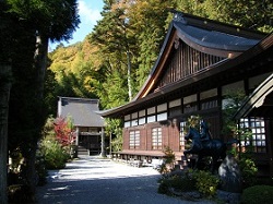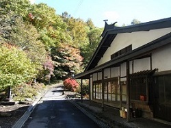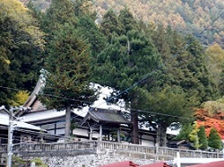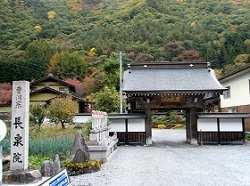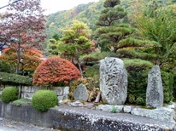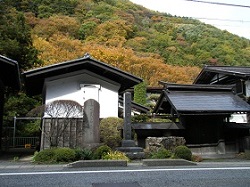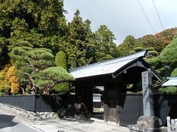 代官屋敷から東へ少し行くと、木曽三大名刹の一つで、木曽氏、山村氏の菩提寺の興禅寺がある。冠木門あたりから川向こうに見えていた紅葉鮮やかなところである。