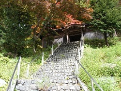 崖道の途中と国道に合流する出口の所には、馬頭観音や道祖神が置かれている。険しい崖の道で命を落とす危険がさぞ大きかったのであろう、旅の無事を祈る人々の気持ちが分かるような気がする。