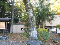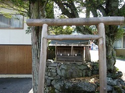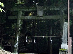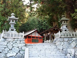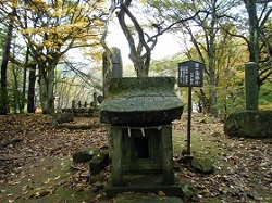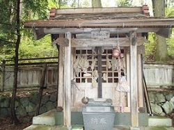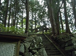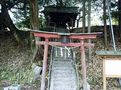 林の入り口の右側の階段を上がった所は御嶽山遥拝所で、寛永2年に再建された鳥居が立ち、小さな祠が祀られている。