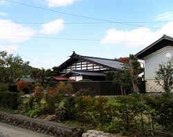 旧道をしばらく行くと、閑静な住宅に囲まれて、代々諏訪高島藩に仕えた散居武士(城下町ではなく在郷の村々に住んだ藩士)の旧渡辺家住宅が保存されている。