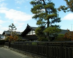 福島役場支所前を右に行き、大手橋を渡ったところに山村代官屋敷跡がある。山村氏は鎌倉幕府の一族の流れを祖とし、関ヶ原で武功を立て木曽谷の徳川直轄支配をまかされる木曽代官となる。以後明治至るまで木曽谷を支配した。
