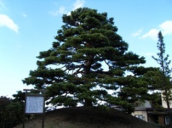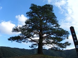国道を横断して左に曲がる下り坂が旧街道である。下り坂の途中に肱懸松と呼ばれる松が1本ポツンと立っている。細川幽斎(細川ガラシャ夫人の夫、細川藤孝のこと)が、この松に肘をかけて一句詠んだというが、標識が無ければ見落としてしまいそうなかわり映えのない松だ。