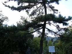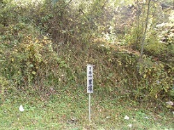 現在は、残念ながら樹が邪魔をしてここからは御嶽山を見ることはできない。薄暗い林の中の道を抜けた辺りで、西方の山の間に御嶽山が見える箇所がある、ということなので一生懸命探すが、良く分からない。しかたなく、たぶんこっちのほうだろうと思う方向にカメラを向けてシャッターだけ切っておくことにする。