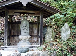 このあたりには、道祖神などの石塔が散見される。