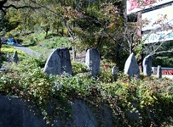 硯水の旧跡がある場所は丸山公園で、ここには多くの石造物や芭蕉句碑などが立っている。