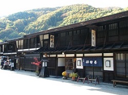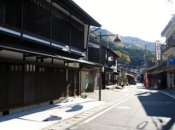 最後は、朝食後、宿を後にして奈良井駅に向かう時の奈良井の街並み。まだ、人通りはほとんどなく、宿は静かなたたずまい。このときの写真が、背景の山の色合いも鮮やかで、最も綺麗に撮れているように思う。