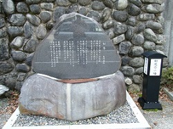 木曽警察署手前の蕎麦屋の向かい側の落石防止のフェンスの後ろに芭蕉の句碑がおかれている。