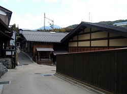 宿場の中ほどには、出梁造りで2階の連子格子が見事な元旅籠川口屋が建ち、ほかにも池田屋などの屋号を標した趣ある家がいくつかあって、往時の様子が窺える。