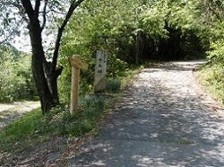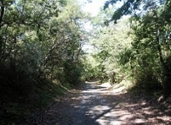 付近は公園となっており、高台で見晴しがよい。石畳は終って細かい砂利道に変っているが、木漏れ日を浴びながら、心地よい風を受け、ゆったりした道を歩くのはなんとも気分が良い。