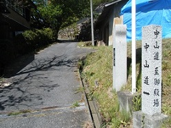 屋敷跡の先から津橋の集落を通って中山道道標の前から再び山の中に入って行く。