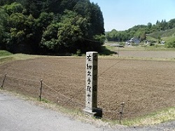 よごれ茶屋跡の前を通って藤川を渡り県道に出ると、道路向こう側にすこし小型の藤村高札場跡がある。ここは深萱(ふかがや)立場があった所で、道路際に説明板が建てられている。立場本陣を含めて10余戸の人家があったそうだ。