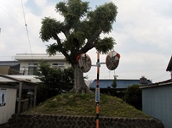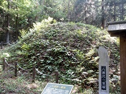 脇本陣を後にして街道をすこし歩いたところに衣裳塚古墳があった。説明板には、直径52mという県下最大の円墳だが、前方後円墳だった可能性もある、と記されている。