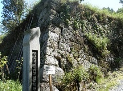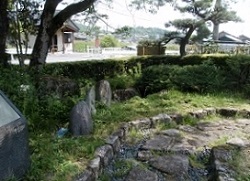 坂の終わり近くに山内嘉助屋敷跡と刻まれた石碑があり、ここは江戸時代に酒造業を営んでいた豪商の屋敷があった場所で、今は石垣だけが残されている。