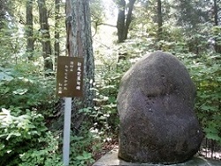 一里塚の先の石畳道を下っていくと、途中、ぼたん岩なる変わった岩が露出している。岩が丸く層をなして、さながら大きな牡丹のように見えるもので、非常に珍しい。