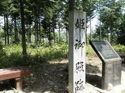 しばらく山中の道を歩くと御殿場跡と刻まれた石碑が建てられている。ここは物見峠の頂上で見晴らしが良く、皇女和宮降嫁の際、休憩所となる御殿が造られという。右手に階段があって、上がって行くと東屋があるが、木が繁っていて景色はいまいちであった。