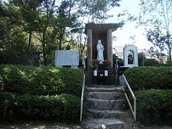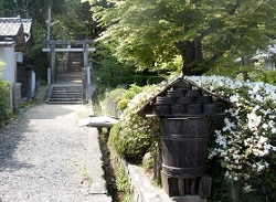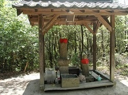 上り坂が続くが、この辺りの坂を巡礼水の坂と呼んでおり、ほどなく巡礼水にたどり着く。説明板によると、「その昔、旅の母娘の巡礼がここで病気になってしまったのだが、念仏を唱えると目の前の岩から水が湧き出し、命が助かった」のだという。