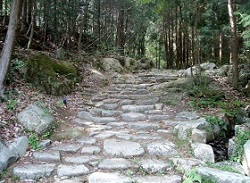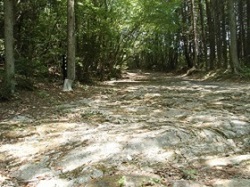 昭和45年に江戸時代のままの石畳道が700m以上にわたって確認され、当時の峠道に復元・整備された。江戸時代の石畳道としては日本一の長さだという。