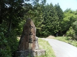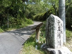 踏切を渡ってすぐに左へ曲がり、中央高速の下を通って坂道を上っていくと、「是より西 十三峠」と刻まれた標柱が建てられている。ここからいよいよ、美濃路の難所「十三峠」に入り、大湫宿まで延々と山中の旅となる。