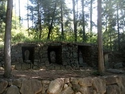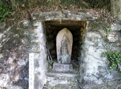 まもなく寺坂と呼ばれる急坂を下っていくが、途中に寺坂の石仏群が見られる。