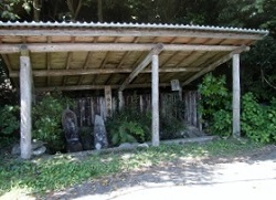 琵琶峠を下り、車道を横切ってさらに下ると県道に合流するが、このあたりが八瀬沢立場跡である。