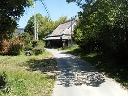 この先は、領下と呼ばれていた集落で、左手には古い八幡宮も残っている。このあたり、歴史を感じさせる大きな屋敷がいくつも立ち並んでいる。