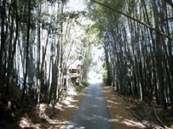 山里の爽やかな空気を吸いながら、宿の周囲をぶらぶら歩くと、それだけで気分爽快になる。今日もまた天気はよさそうだ。竹林の上に青空が広がっている。
