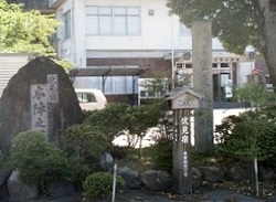 国道高架下の方に戻り、左に進むと太田代官所跡と記された説明板が建てられている。ここは東濃一帯を治めていた尾張藩代官所があった所で、現在は太田小学校の敷地となっている。その代官所の役人であった坪内平之進の末子として安政6年(1859)に誕生したのが明治の文豪坪内逍遥である。小学校脇の道を通って学校正面側に回ると坪内逍遥顕彰碑と説明板を見ることができる。