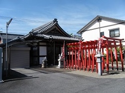 すぐに江戸側の枡形道が見えてくる。手前左に文明6年(1474)開創という祐泉寺と、朱鮮やかな鳥居が並ぶ太田稲荷がある。