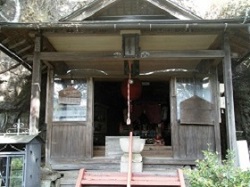 少し歩くと右手の道路から少し上がった所に穴観音が鎮座している。小さな観音が祀られていて、観音の縁日に拝むと九万九千日の御利益があると信じられ、九万九千日観音とも呼ばれている。
