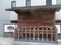 赤坂神社参道の坂を下り、通りに出て西にすこし歩くと鵜沼中山道交差点際に高札場が復元されている。