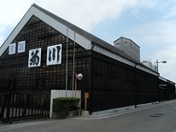 脇本陣のすぐ先に見える黒塗りの大きな建物は、明治4年の創業の菊川酒造の本蔵で、本蔵は大正時代の後半に建てられたもの。