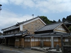 菊川酒造のすぐ先に、国登録有形文化財に指定されている古民家が4棟並んでいる。手前から、丸一屋と称し旅籠であった明治27年建築の坂井家、次は唯一江戸時代の建物で、旅籠であった茗荷屋梅田家、3棟目は明治元年建築の梅田家、4棟目は昭和5年建築の安田家である。いずれも重厚で実に見事な屋敷である。