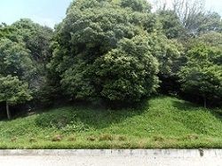 左側は、戦時中に陸軍兵舎を建てるために半分以上削ってしまったということで、今は僅かに痕跡が残る程度となってしまった。