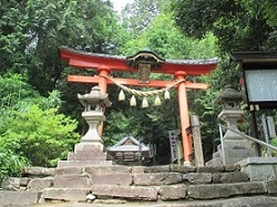 少し先に鏡神社がある。新羅から帰化した人たちが自国の王子天日槍命(あめのひぼこのみこと)を祖神として祀ったことに始まる神社である。元服した牛若丸は参道の松枝に烏帽子を掛け、鏡神社へ参拝し、源九郎義経と名乗りを上げて源氏再興を祈願したという。