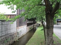 神社前の道路を渡った行畑の街並みは、きれいな水が流れ、とても静かで落ち着きのある風情が感じられた。
