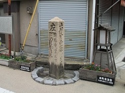 そのすぐ近くには蓮照寺があり、境内の片隅に道標などが3本置かれている。そのうちの一番大きな道標は、先ほどの朝鮮人街道分岐点にあったもので、「右中山道 左八まん道」と刻まれている。
