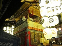 鉾町では、コンチキチンコンチキチンと祇園囃子が奏でられ、山鉾には提灯の明かりがともされ、屏風祭や会所飾りも披露されていたりで、何ともいえない風情である。とくに、新町通り、室町通りは、先に進むのが難しいほどの大変な人出で賑わっている。