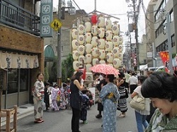 日中の鉾町は、夜のような賑やかさはないが、幼稚園児の団体や小さな子を連れた家族連れなどが結構たくさんいたりして、夜とはちょっと違って、地元に溶け込んだ祭りの雰囲気が感じられる。