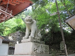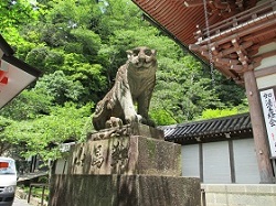 鞍馬駅から少し歩くと、湛慶作の仁王尊像をまつる鞍馬寺仁王門がある。仁王門前には、左右に狛犬ならぬ阿吽(あうん)の寅が配置されている。