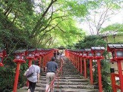 今日は、 京の北の奥座敷、鞍馬から貴船の古道を歩く。鞍馬天狗や義経の伝説など神秘的なパワースポットやたっぷりの自然が楽しめる2時間程のハイキングコースだ。貴船では、一度は行ってみたいと思っていた川床での食事を予約している。その後、上賀茂神社に立ち寄り、帰途に就く予定だ。