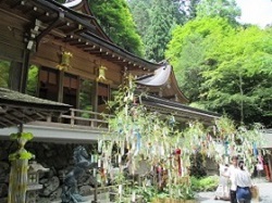 川音が聞こえ鞍馬寺西門を出て貴船につくと、すぐのところが貴船神社本宮への参道となりその先に中宮、さらに先に行くと奥宮とへと続く。多くの参拝者が訪れている境内は、この時期は七夕笹飾りが美しい。