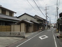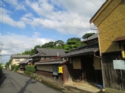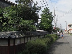 このあたりの建物の並び方は、中山道本山宿で見られたような、家が道と斜めにのこぎり状に並ぶ斜交屋敷の名残が残っている。