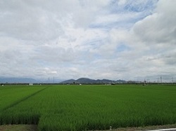 野洲に向かう途中には、雄略天皇の御代(413年頃)に掘らせた用水池の一つと云われる西池など、大きな溜池がいくつもある。