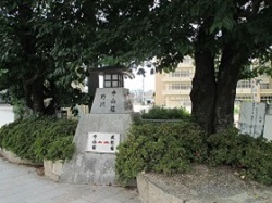 駅を出て少し先の踏切を渡って進むと、まず右側に大きな楠が一本立つ公園がある。別子銅山の支配人として銅山の煙害問題に対し公害対策と環境保全に努め、後に住友2代総理事として住友財閥の基礎を築いた伊庭貞剛(いばさだたけ)の屋敷跡である。