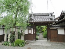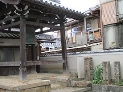 その先の桝形跡の変則四叉路のところに茅葺き屋根の唯心寺がある。茅葺き屋根の寺というのは意外に珍しい。